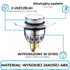Zintegrowane sitko wyłapuje włosy i zanieczyszczenia, zanim trafią do odpływu. To proste rozwiązanie, które raz na zawsze rozwiązuje problem wolno spływającej wody.
