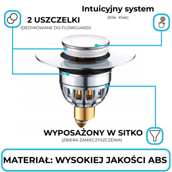 Nie potrzebujesz żadnych narzędzi – dzięki elastycznym uszczelkom filtr automatycznie dopasuje się do Twojego odpływu.