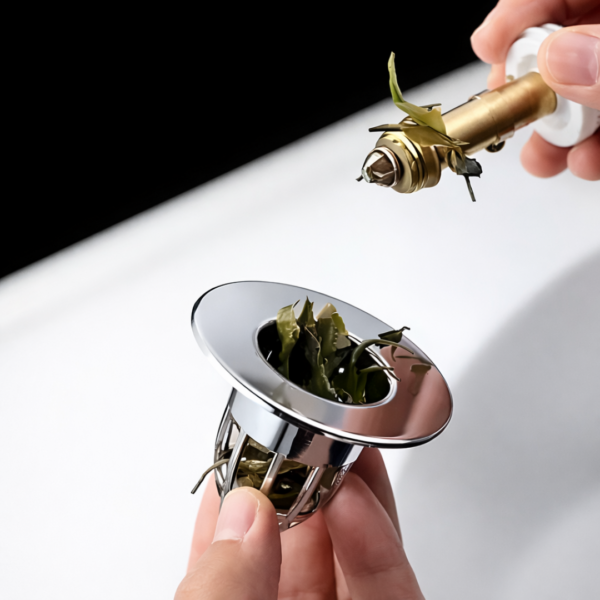 Zintegrowane sitko wyłapuje włosy i zanieczyszczenia, zanim trafią do odpływu. To proste rozwiązanie, które raz na zawsze rozwiązuje problem wolno spływającej wody.